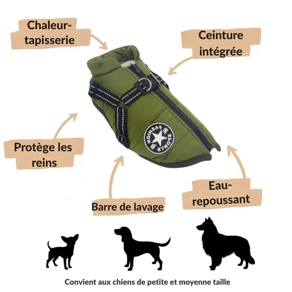 • Imperméable et protectrice – garde votre chien au sec par tous les temps.